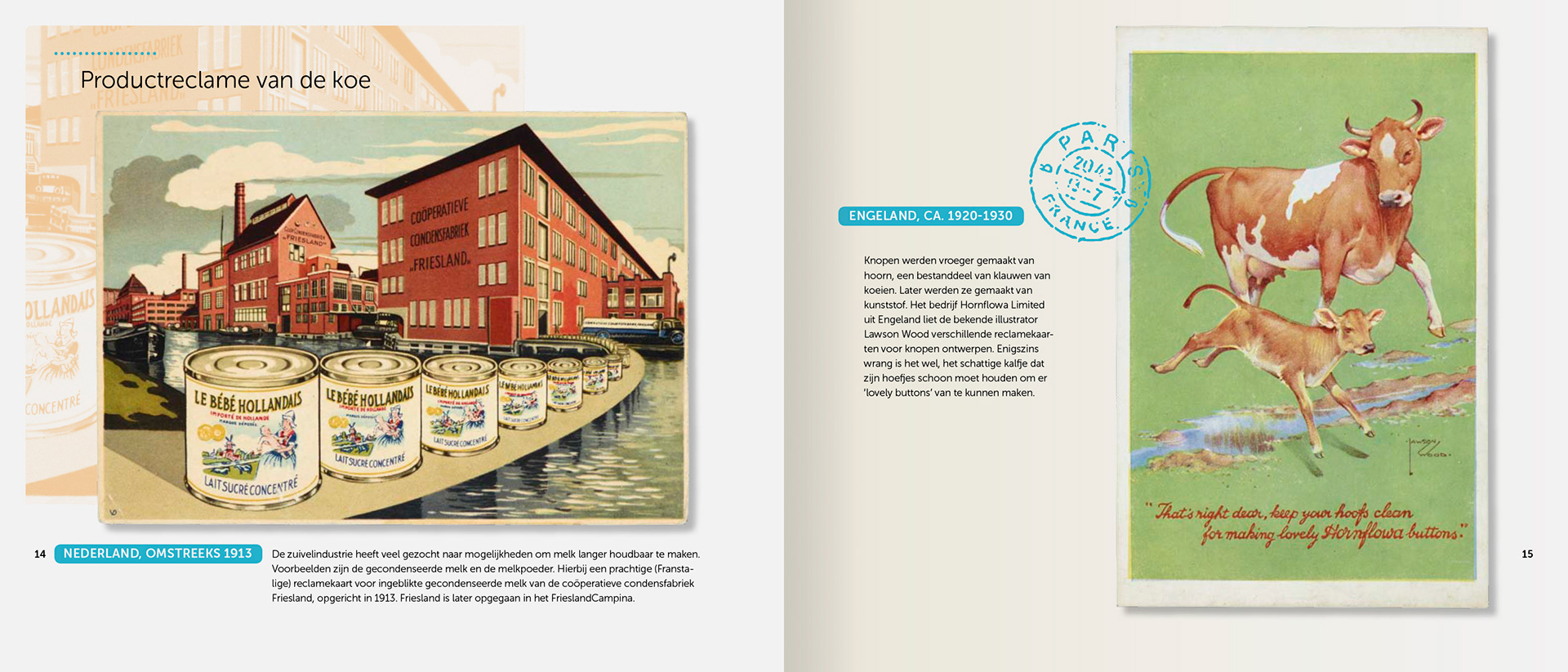Ontwerp voor een boek met een bijzondere selectie van ongeveer 200 prentbriefkaarten, die de innige band tussen koe en mens laten zien.
