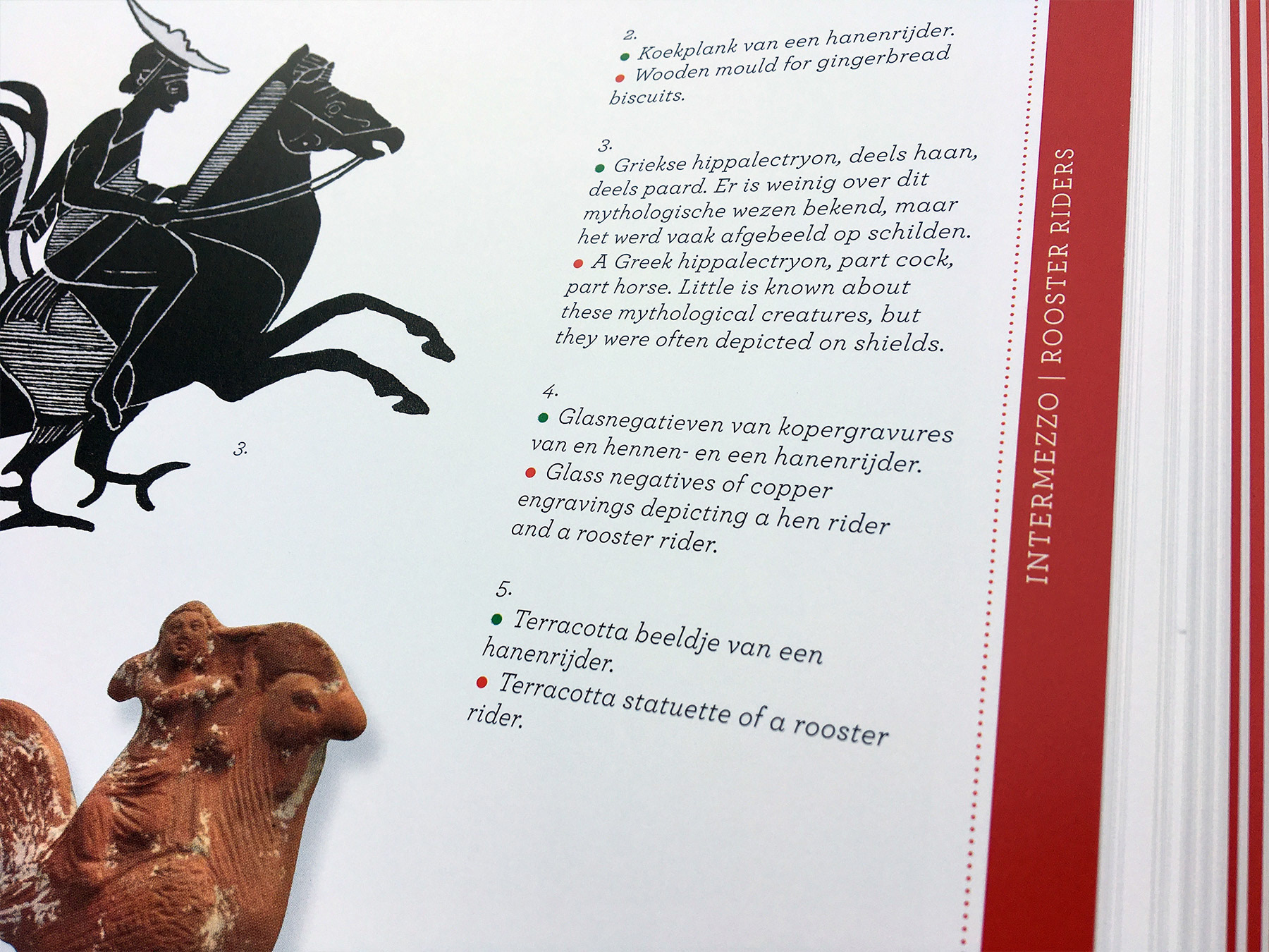 Boordevol informatie over de kip in geschiedenis en kunst, met rasbeschrijvingen en bijzondere nooit eerder gepubliceerde glasnegatieven. Het is een tweetalig boek en dat zie je terug in de vormgeving, zodat de talen voor de lezer gemakkelijk uit elkaar zijn te houden. Kleuren van koppen, intro's en beeldelementen (lijntjes aan de zijkant, bolletjes fotobijschriften) zijn in het Nederlands groen, in het Engels rood.