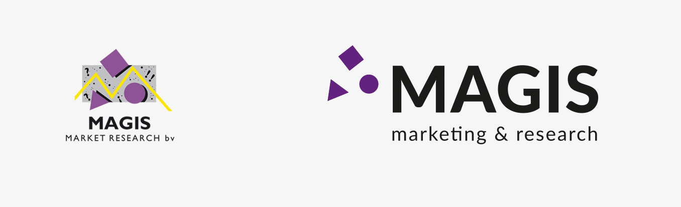 links het oude jaren '80 logo, rechts het nieuwe eigentijdse logo